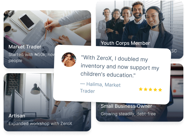 Every dream deserves a chance. Whether you’re a market trader with expansion plans or a corps member with a business idea — ZeroX is your partner in progress.